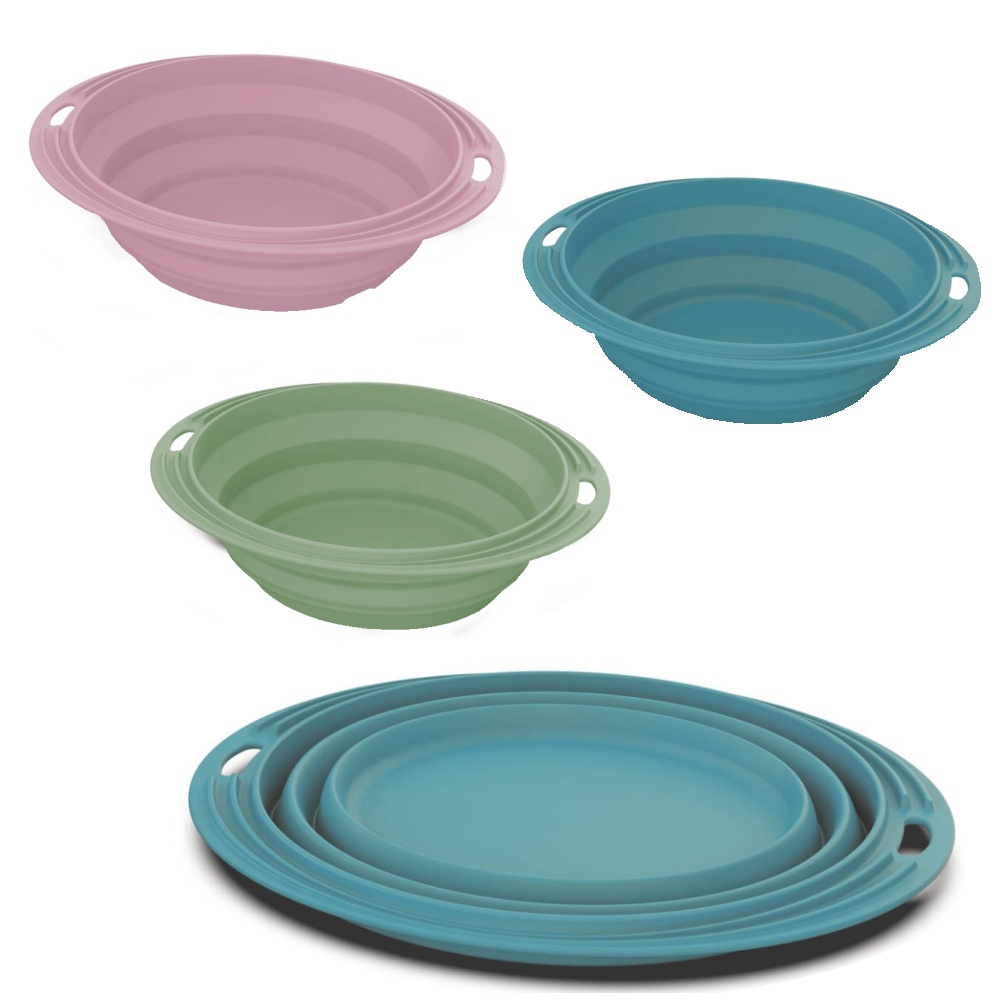 Cestovní silikonová skládací miska oválná. Objem 0,5 l. Ideální na cesty: skladná, zabere minimum místa a rychle schne. Usnadňuje hydrataci psů a koček v terénu.