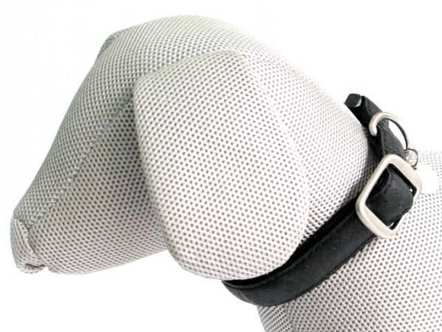 Kožený obojek černé barvy s celopotiskem podšitý jemným nylonem ve stejné barvě