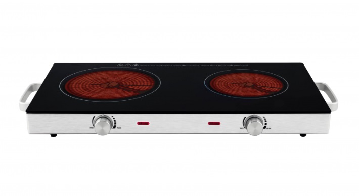 Výkonný nerezový dvouplotýnkový vařič Bravo (2800 W) se sklokeramickým povrchem. Nabízí dvě zóny (200 a 165 mm), plynulou regulaci a praktická madla.