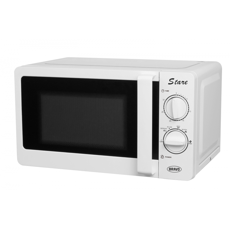 Mikrovlnná trouba BRAVO STARE s objemem 20 l. Nabízí mikrovlnný ohřev a rozmrazování, má mechanické ovládání a časovač do 30 minut. Příkon 1150 W.