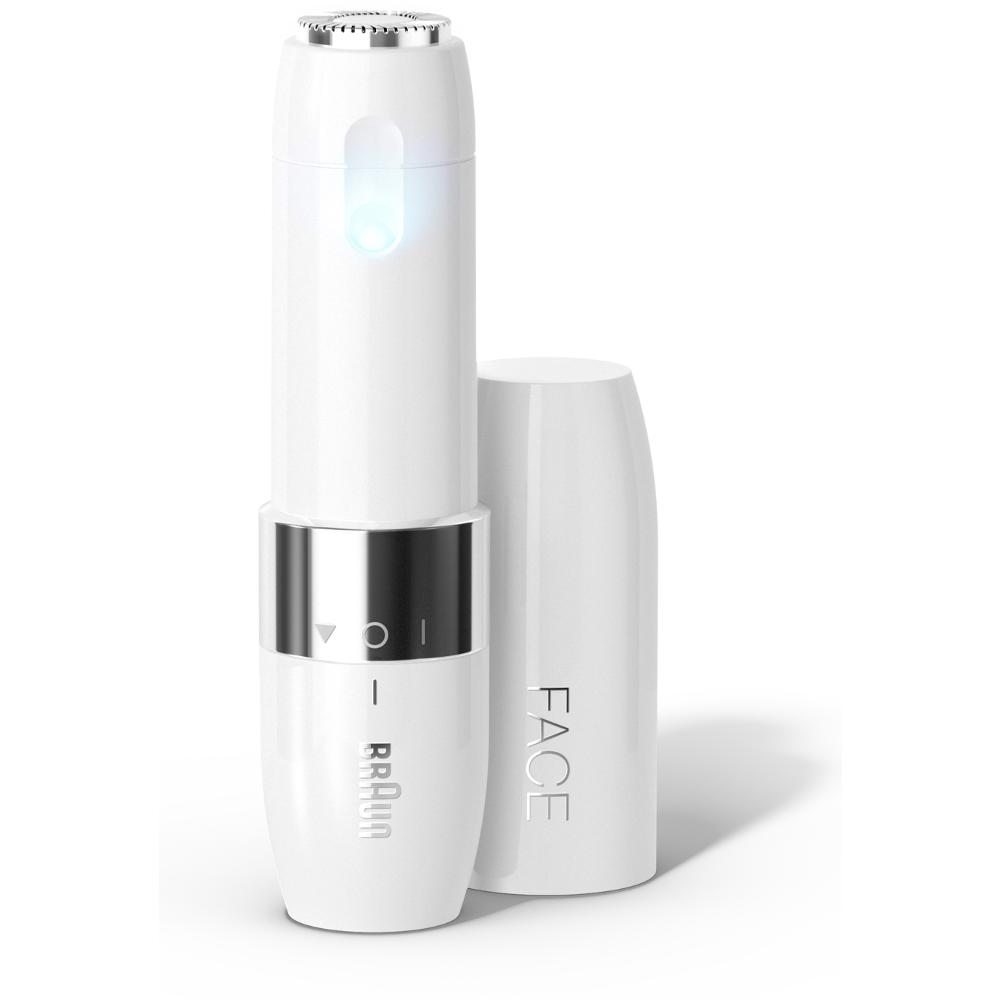 Braun FS1000 Mini depilátor na obličej, dámský elektrický strojek na odstraňování chloupků v obličeji, strojek na odstraňování chloupků v obličeji a holení, rychlý a jemný, úprava v oblasti nad horním rtem, na bradě a tvářích, pro snadnější nanášení make-upu, ideální na cesty, s osvětlením Smartlight, bílá barva.