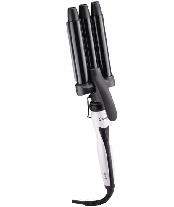 Designová trojkulma Bravo Sami (22 mm) pro tvorbu přirozených vln. Teflonový povrch pro ochranu vlasů, úzká ergonomická rukojeť a světelná signalizace provozu.