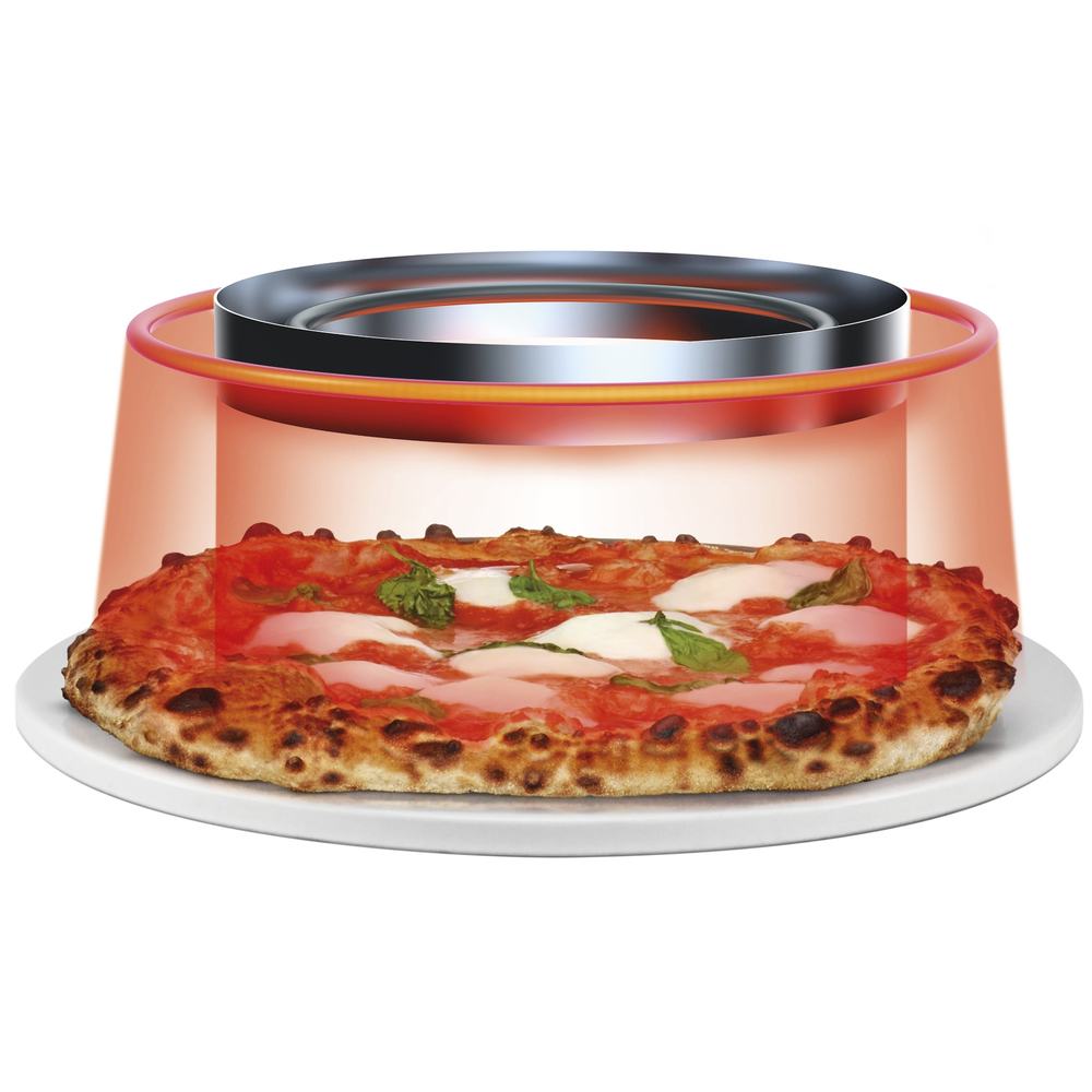 SÁLAVÉ TEPLO - chrání křehké ingredience a intenzivní teplo odráží směrem k okrajům pizzy, aby bylo dosaženo dokřupava propečených okrajů nebo rovnoměrné propečení zvolených ingrediencí, tak i dokonalé roztavení sýrů.