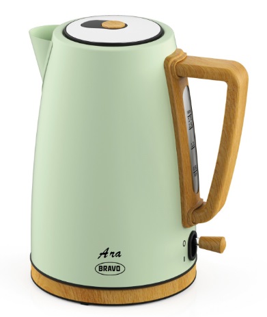 ELCHO.CZDomácí spotřebičeRychlovarné konviceKovovéBRAVO B 4936 ARA konvice 1,7l nerez zelená dekor dřevo