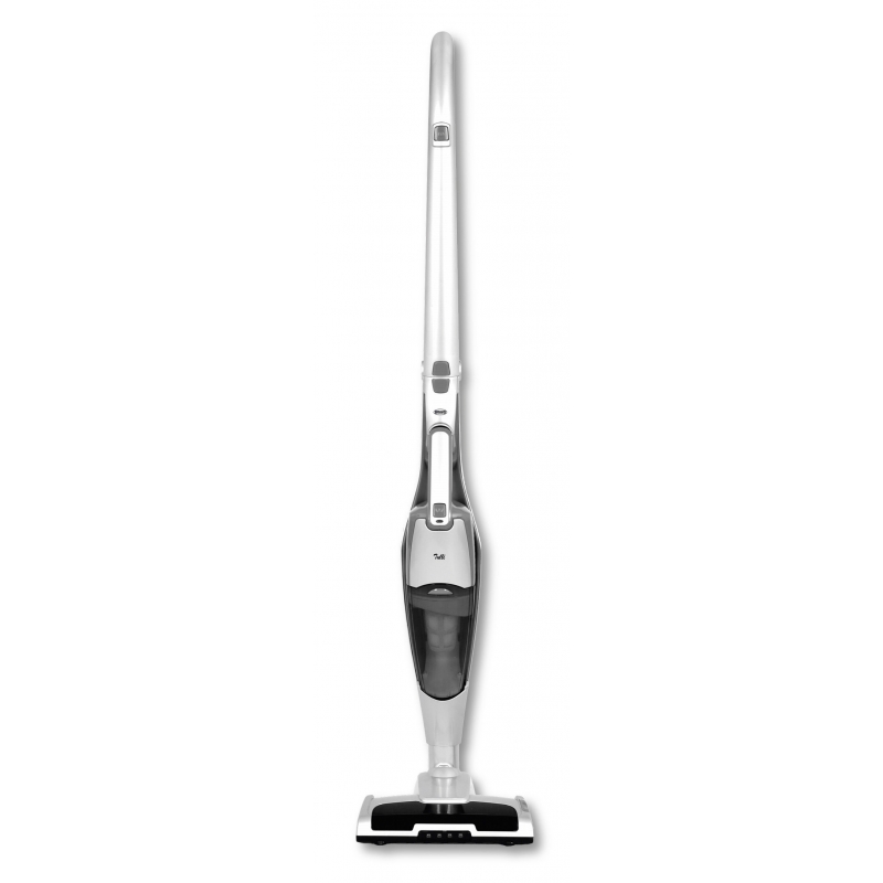 Stříbrný TUULI 2v1. Bezdrátový tyčový a ruční vysavač s 22,2V Li-ion baterií (až 35 min provozu). LED turbokartáč, HEPA filtr a elegantní stříbrný design.