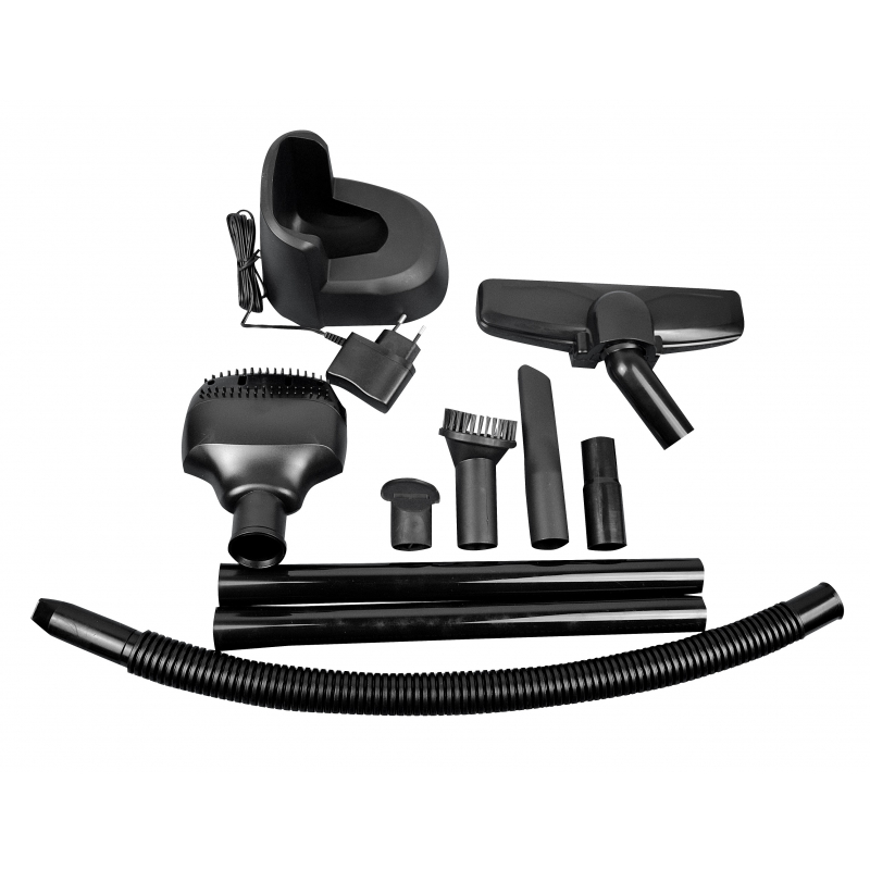 V balení naleznete kompletní sadu pro úklid: PET kartáč, podlahovou hubici, prodlužovací trubice, flexibilní hadici, štěrbinovou hubici, nástavec na vysávání kapalin, hubici s kartáčkem, redukci a textilní sáček na příslušenství.