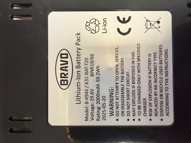 Kompatibilita: Určeno pro tyčový vysavač BRAVO B4944 POLLO, který používá akumulátor s napětím 29,6V.