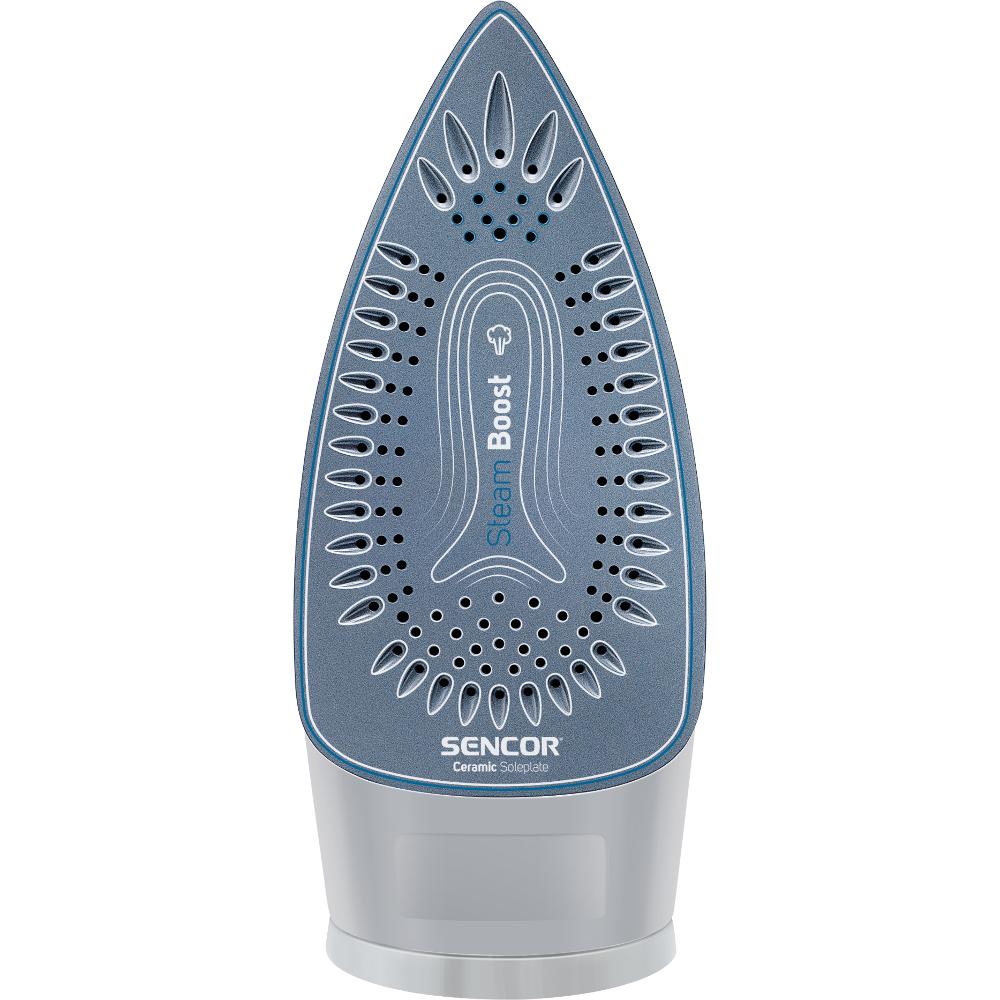 SENCOR SSI 7710BL – napařovací žehlička s keramickou žehlící plochou, příkonem 2 400 W a funkcemi proti vodnímu kameni a odkapávání. Objem nádržky 300 ml.
