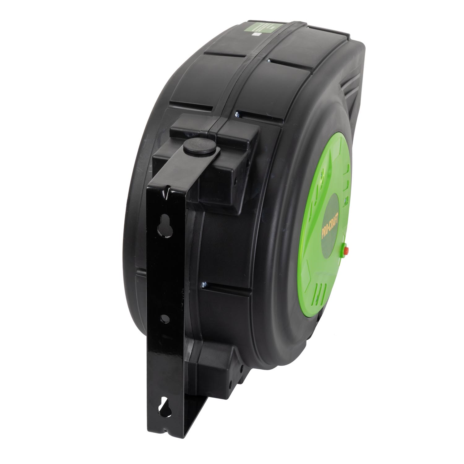 Praktický samonavíjecí buben Procraft (15 m). Kvalitní kabel 3x1,5 mm2, max. zátěž 3200 W, automatické navíjení a robustní konstrukce pro montáž na stěnu.