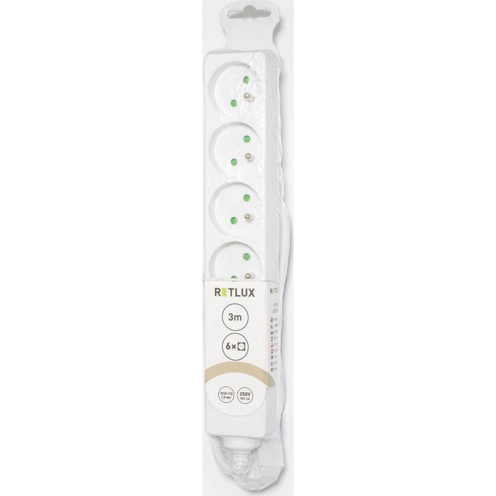 Kvalitní prodlužovací kabel Retlux (3 m) se 6 zásuvkami. Průřez vodiče 3×1,0 mm2, spolehlivý vodič H05VV-F. Ideální pro domácnost i kancelář.