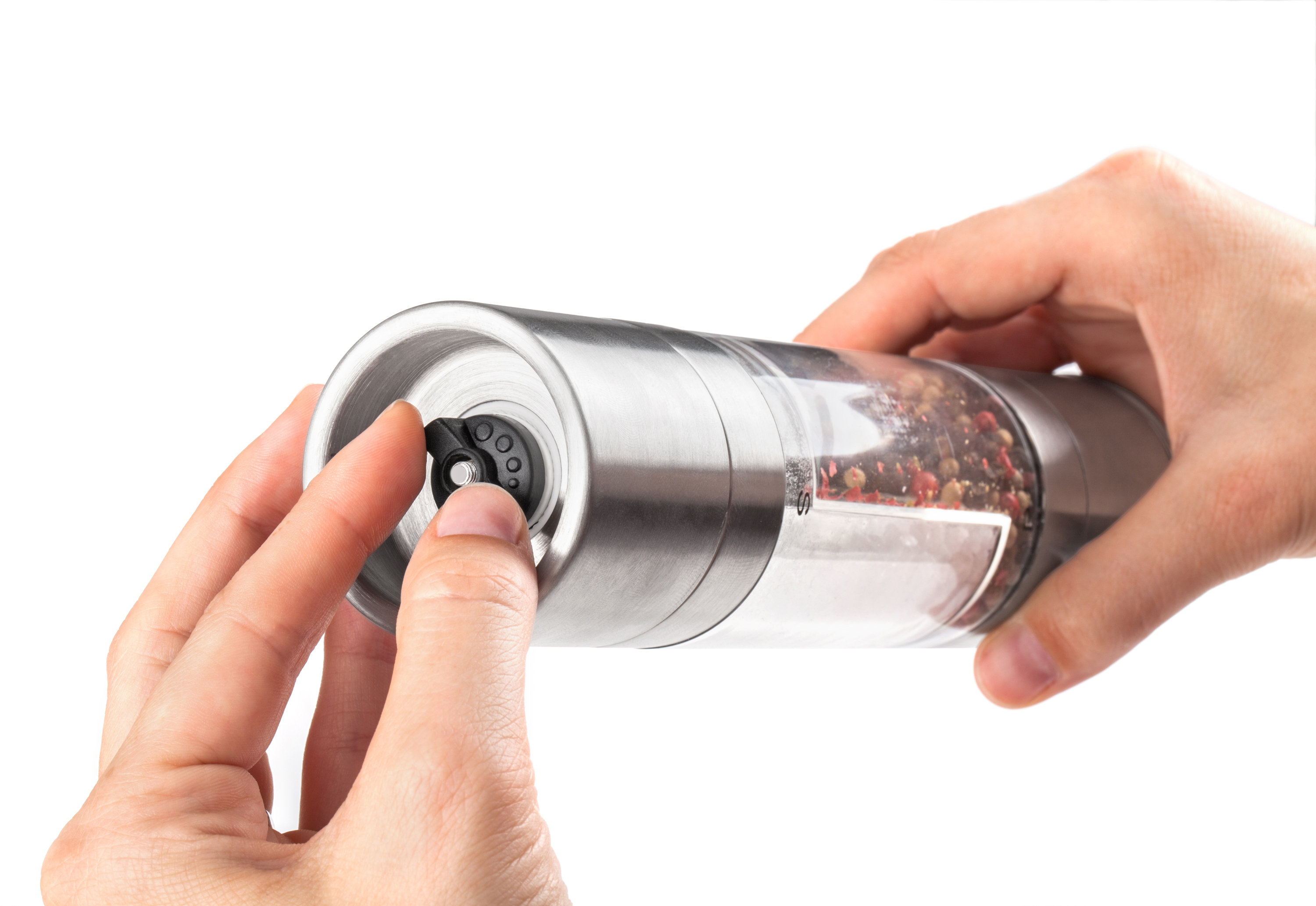 Mlýnek na koření/pepř/sůl je vyroben z nerezavějící oceli a plastu s keramickým mlecím mechanismem s nastavitelnou hrubostí mletí