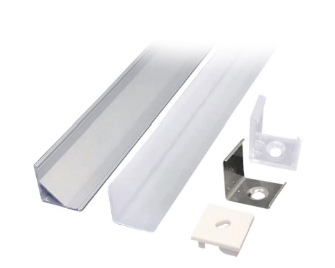 Hliníkový profil pro LED pásky rohový, 16x16mm, mléčný difuzor, 1m