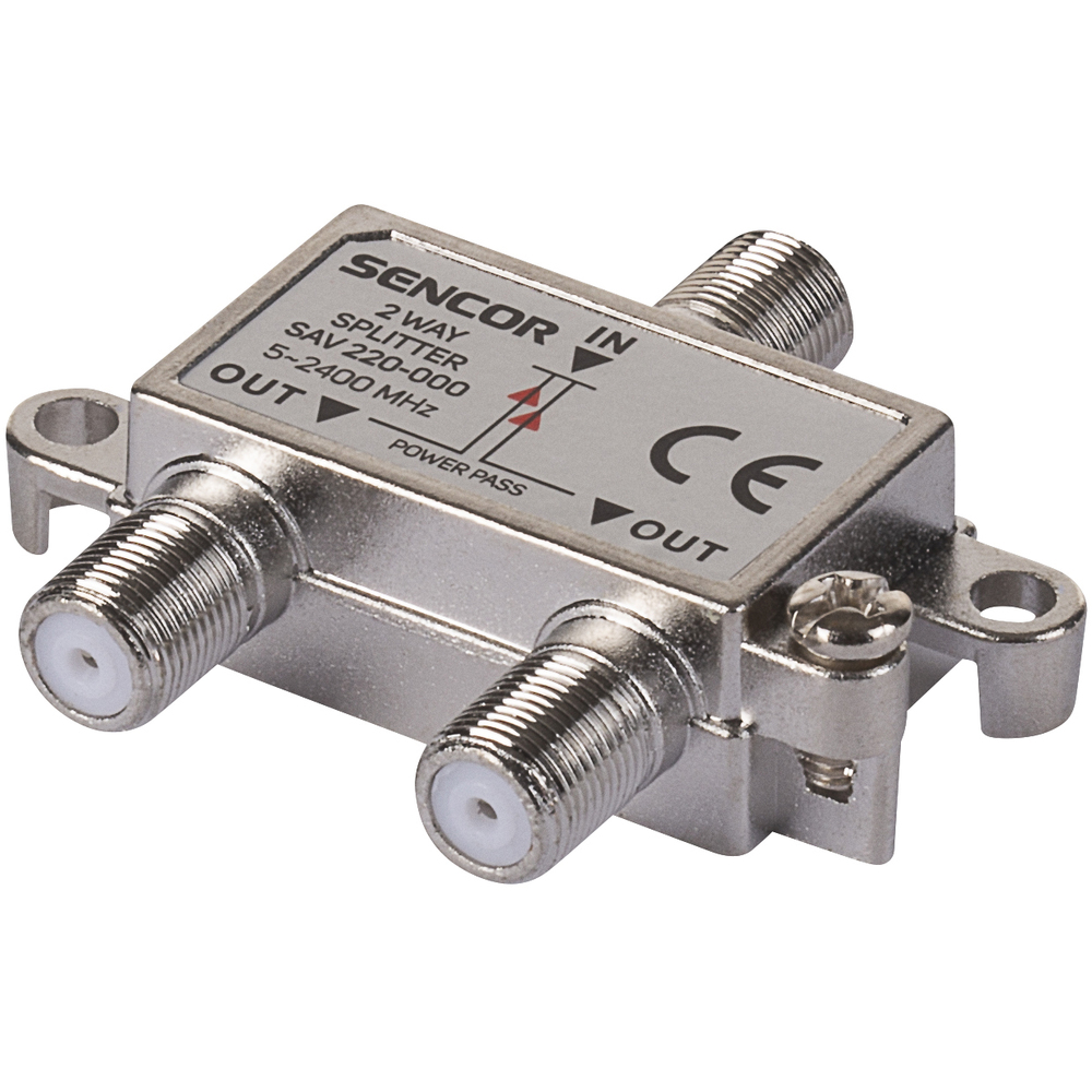 SENCOR SAV 220-000 anténní rozbočovač 1F-2F, dělí signál na 2 výstupy, použití TV, satelit.
