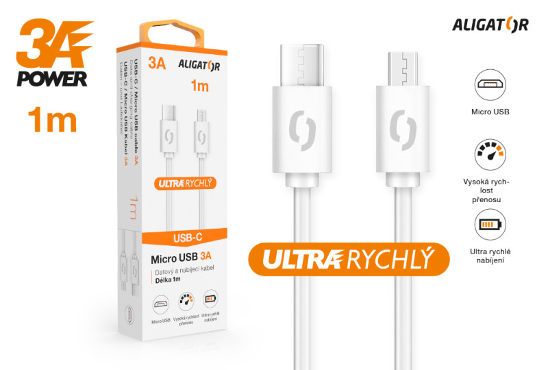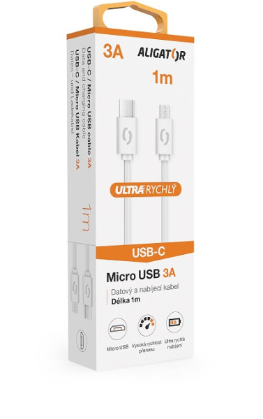 ALIGATOR kabel USB-C/USB-Micro power 3A 1m bílý DATKP42