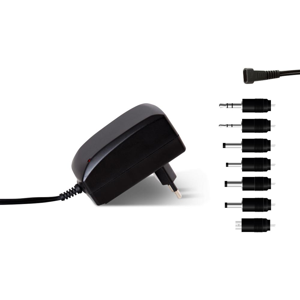 SENCOR SPS 22. Univerzální napájecí zdroj 2250 mA s nastavitelným napětím (3–12 V). 7 výměnných koncovek včetně Micro USB. Chráněn proti zkratu a přepětí.