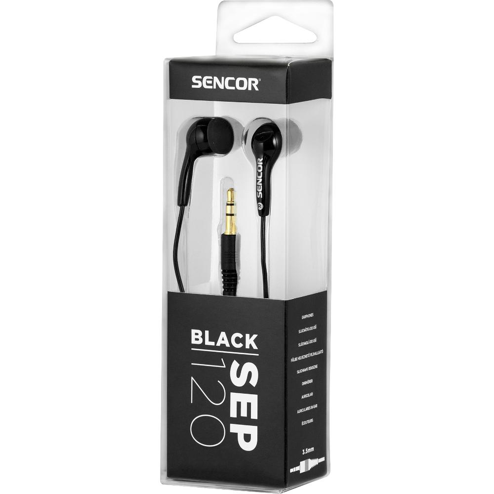 Sencor sluchátka černá špuntová SEP 120 s frekvenčním rozsahem 20 Hz - 20 kHz.