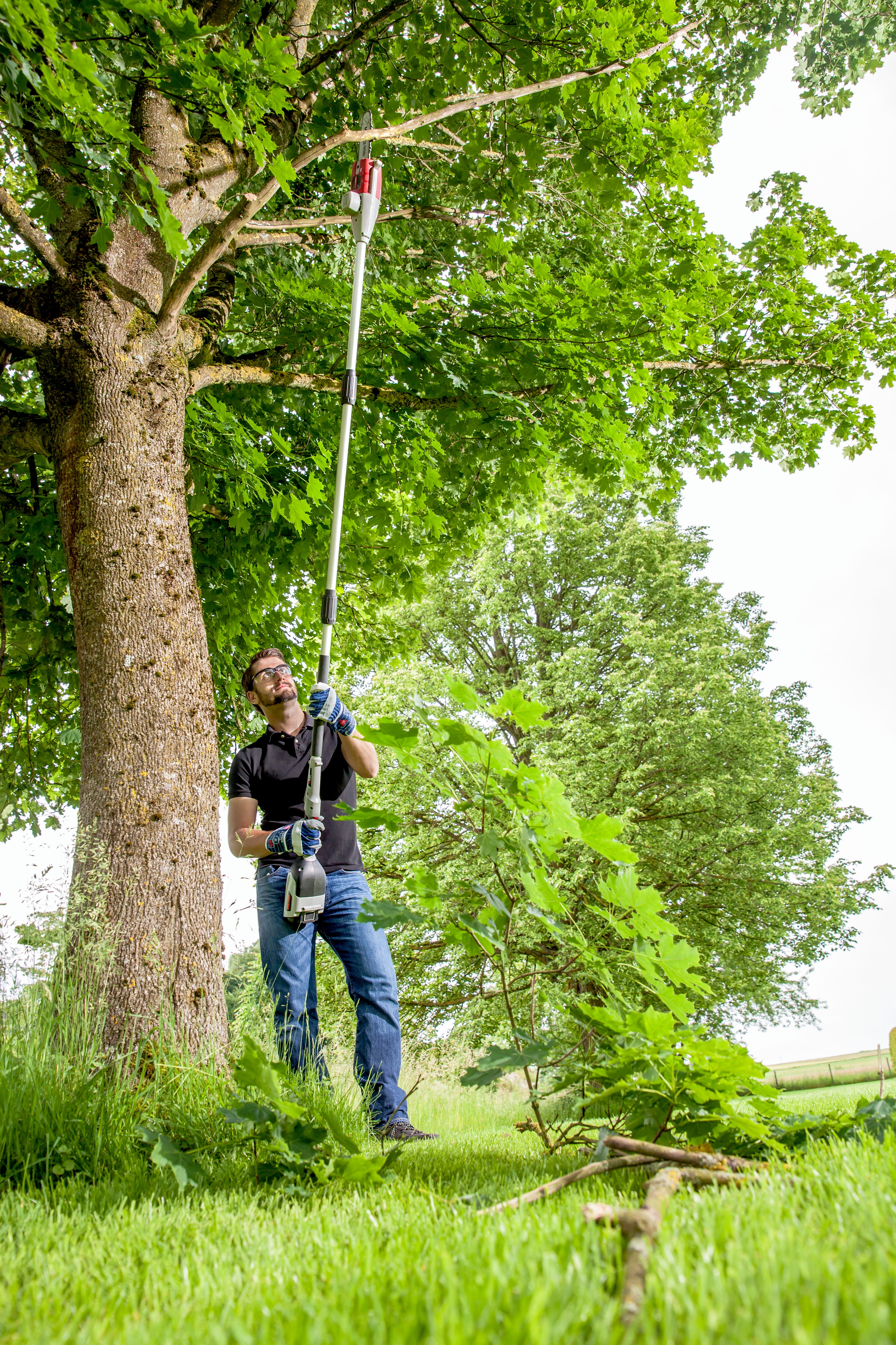 Máte-li multifunkční nářadí AL-KO 36 V MT 40, můžete základní zařízení snadno přeměnit na prořezávač větví pomocí nástavce AL-KO 36 V CSA 4020. Díky systému rychlé výměny bez použití nářadí lze nástavec nasadit během okamžiku - a prořezávání může začít. Kvalitní 20 cm lišta s řezacím řetězem vám umožní snadno proříznout i silnější větve bez naklánění, zasekávání nebo přetržení řetězu. To vám umožní pracovat nad hlavou, aniž byste se unavili, a to způsobem, který je pro tělo nenáročný - podepřený popruhem na přenášení, který je součástí dodávky. Díky bateriovému provozu základního zařízení je pohodlný s vysokou volností pohybu bez starostí s otravnými kabely. To je výhodné zejména při práci nad hlavou a na žebříku. Pohonná jednotka je navíc výrazně lehčí než srovnatelný zážehový motor a umožňuje tiché, bezemisní a na údržbu nenáročné použití v kteroukoli denní dobu. Základní jednotku MT 40 i nástavec CSA 4020 lze po demontáži přepravovat a skladovat velmi prostorově úsporným způsobem.