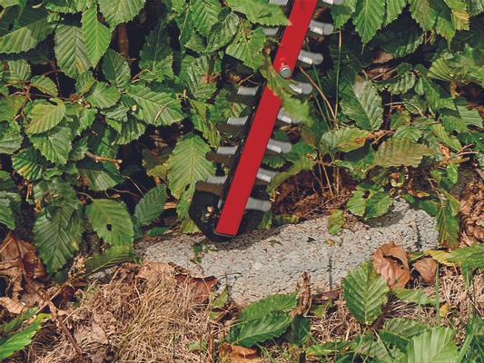 Díky praktickému sběrači řeziva lze při stříhání živého plotu řezivo dokonale odstranit z horní části živého plotu.
