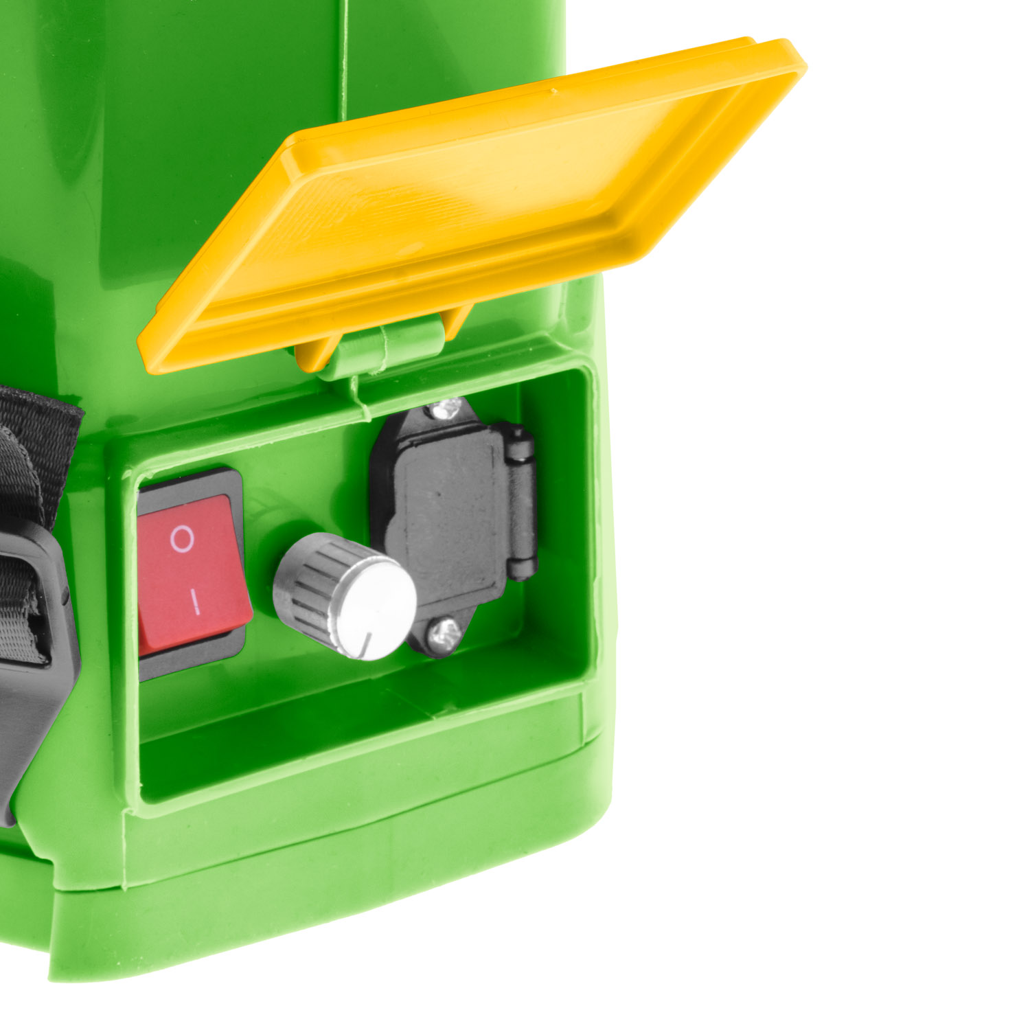 Součástí dodávky je nabíječka a baterie umístěná bezpečně uvnitř stroje v odolném obalu proti vlhkosti.