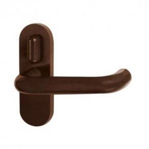 Mezipokojová klika HOLAR H 04 hnědá s oválným štítkem, uzamykatelná.