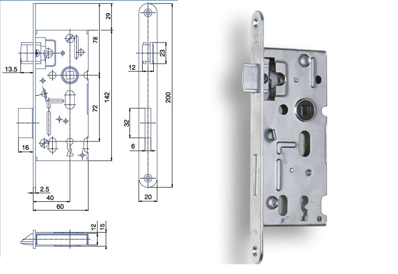 Zámek obyčejný HOBES K 103 P-L s roztečí 72mm a zádlabem 60 mm.
