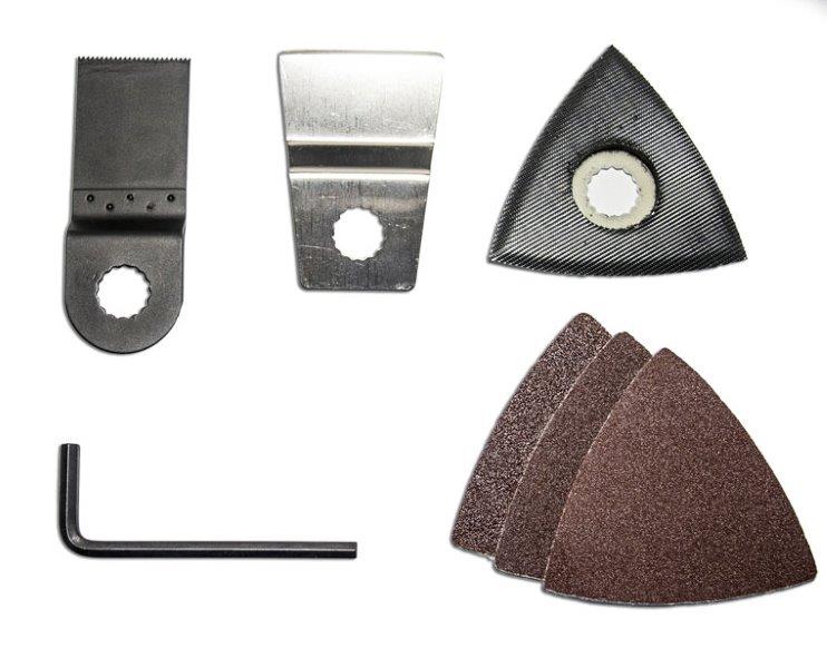 Univerzální multifunkční nářadí TUSON (220 W) pro řezání, broušení a škrábání. Regulace otáček až 19 000 ot./min, OIS systém upnutí a bohaté příslušenství v balení.