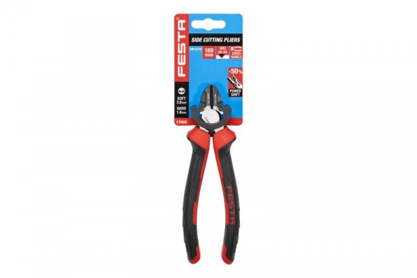 Boční štípací kleště FESTA 17005 o délce 180 mm z uhlíkové oceli disponují indukčně kalenými čelistmi a ergonomickou rukojetí, která efektivně snižuje potřebnou sílu při práci.