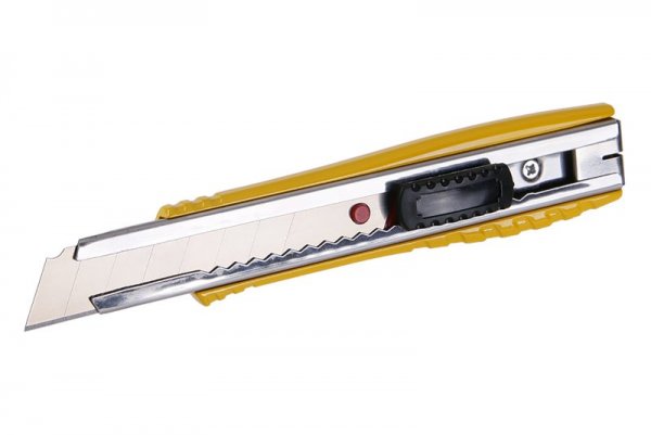 FESTA 16150 odlamovací nůž 18 mm. Robustní hliníková konstrukce s automatickým zámkem a nerezovou sponou. Štíhlé tělo pro přesný řez a maximální odolnost.
