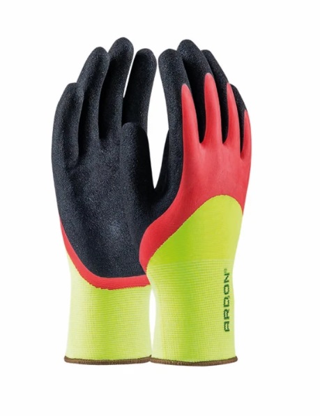 Voděodolné rukavice Petrax Double vel. 8. 3/4 máčení v latexu a pěně, polyesterový úplet. Odolnost proti kontaktnímu teplu do 250 °C. Norma EN388 a EN407.