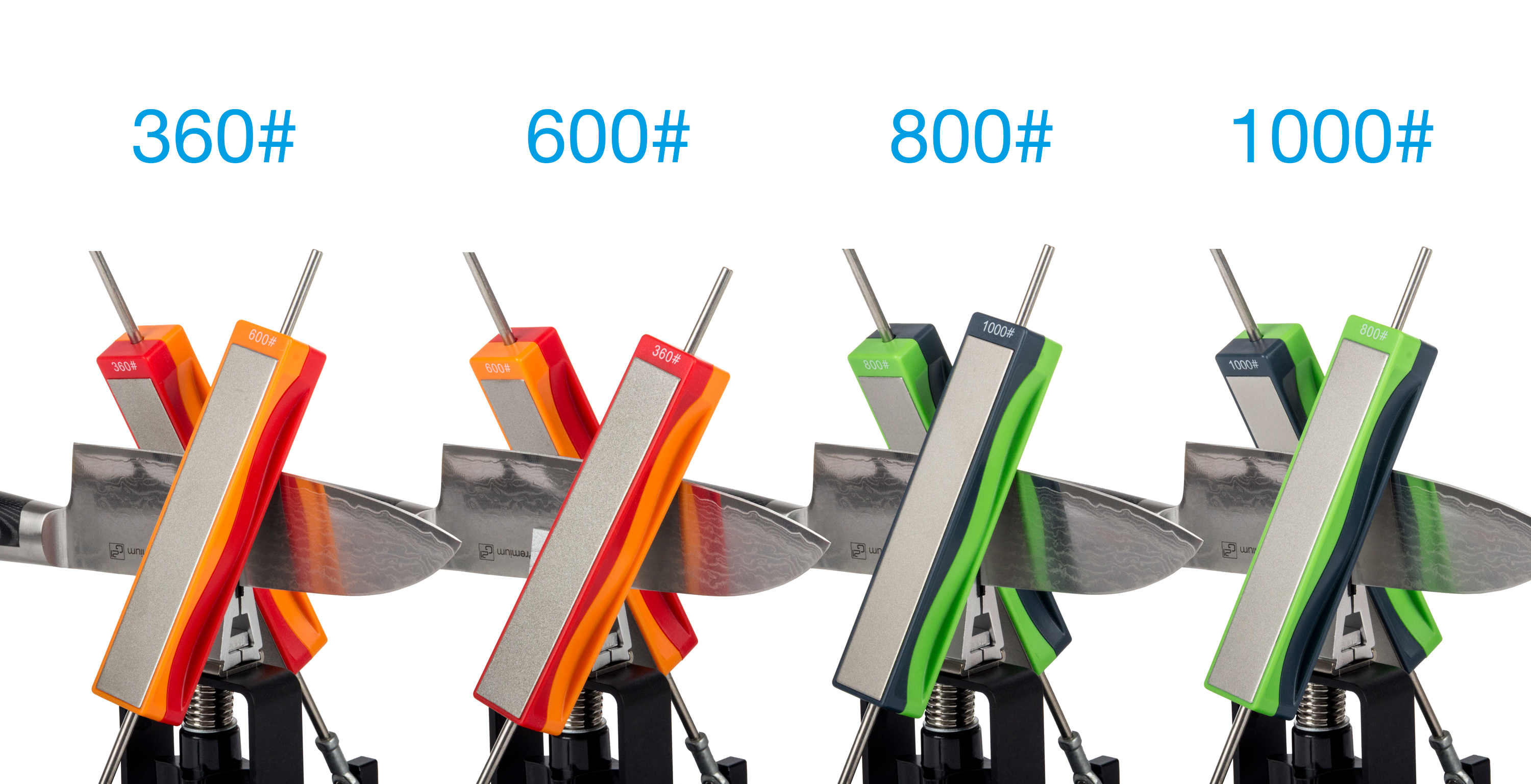 Pro broušení nožů využijte diamantové brusné bloky se zrnitostí #600, #800 a #1000.